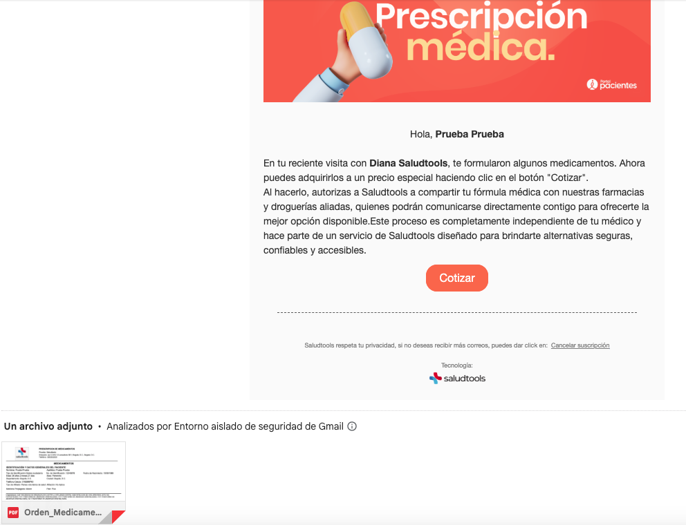 Saludtools no tiene conocimiento sobre la orden del paciente. Esta funcionalidad está diseñada para ofrecer un servicio confiable, transparente y que prioriza siempre la confianza del médico y el paciente.